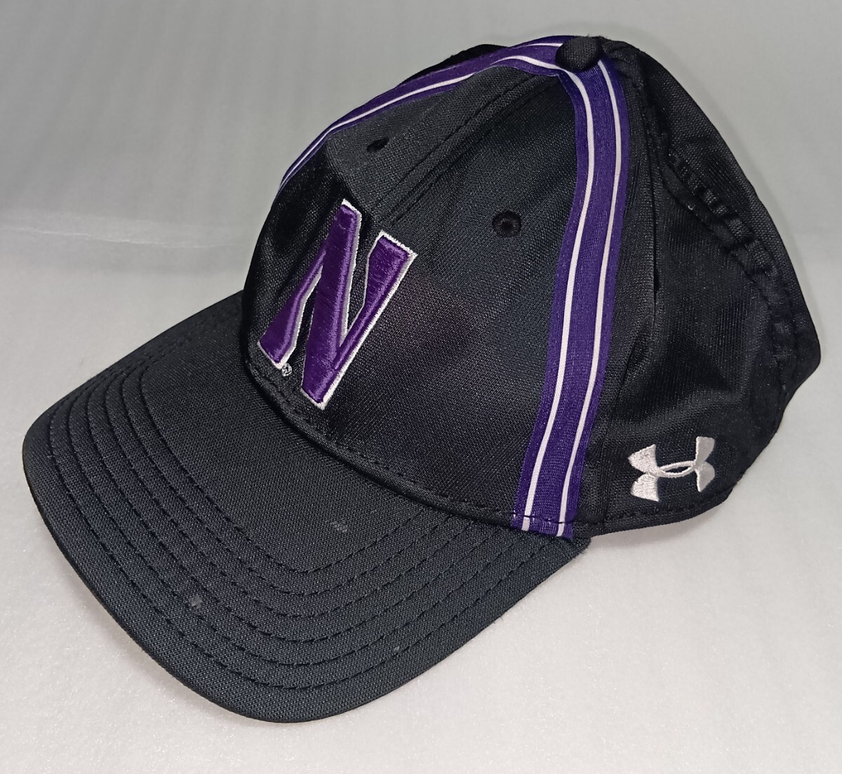 > ☆UNDER ARMOUR 調節可能OSFAキャップ帽子スポーツ黒ブラック紫色LINE刺繍UA白ファッションNORTHWESTERNアウトドア洗濯済 アンダーアーマー