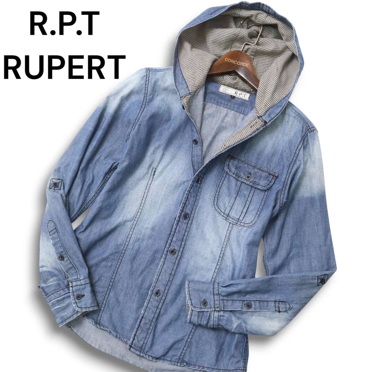 > R.P.T RUPERT ルパート 通年 USED加工★ 千鳥格子 長袖 デニム フーデッド シャツ パーカー Sz.L メンズ