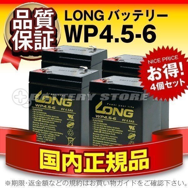 (Long) サイクルバッテリー WP4.5-6 新品 [ GP645 PE6V4.5 6M4 対応] 保証付