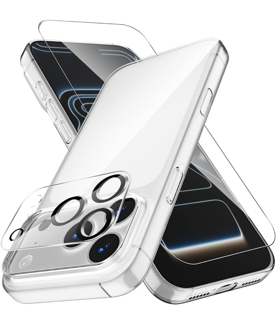 > 1+1+1セット】For iPhone 17 Pro Max ケース+ガラスフィルム+カメラフィルム Mosasa 超薄型 クリア カバー 保護フィルム レンズ保護