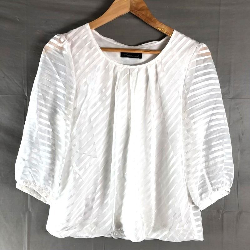- アルテマーヴェル Artemarvel ブラウス バックリボン 袖シースルー ラメテープ ホワイト系 9Rサイズ 2025082500260