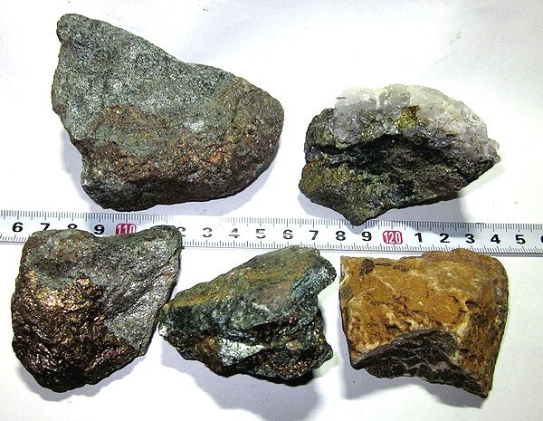 - 日本の鉱物 愛媛県四国中央市伊予鉱山の黄銅鉱 5個セット約727g