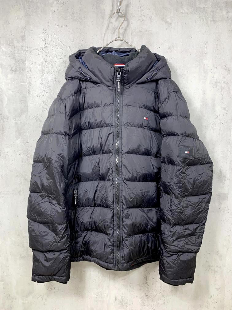 - TOMMY HILFIGER トミーヒルフィガー NYLON PERFORMANCE HOODY PUFFER JACKET 中綿 ジャケット sizeXL/黒 ミットドナイト ◆■◎