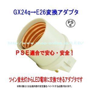 > PSE適合■GX24q(完全対応)→E26変換コネクタ(アダプタ) グロー球工事不要 FHT12 FHT16 FHT24 FHT32 FHT42 FHT57対応