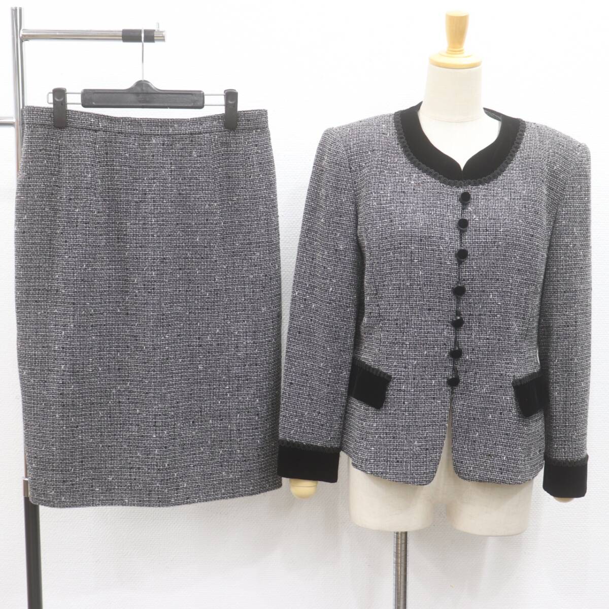 - ITFUZY31NTBT 即決 本物 Lancetti ランチェッティ ツイード セットアップ ジャケット スカート ブラック レディース サイズ 42/44