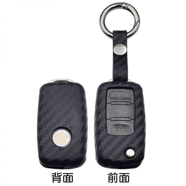 - フォルクスワーゲン スマートキー用 キーカバー カーボン調 シリコン製 キーケース カーボン VW Volkswagen用 ビートル/ゴルフなど