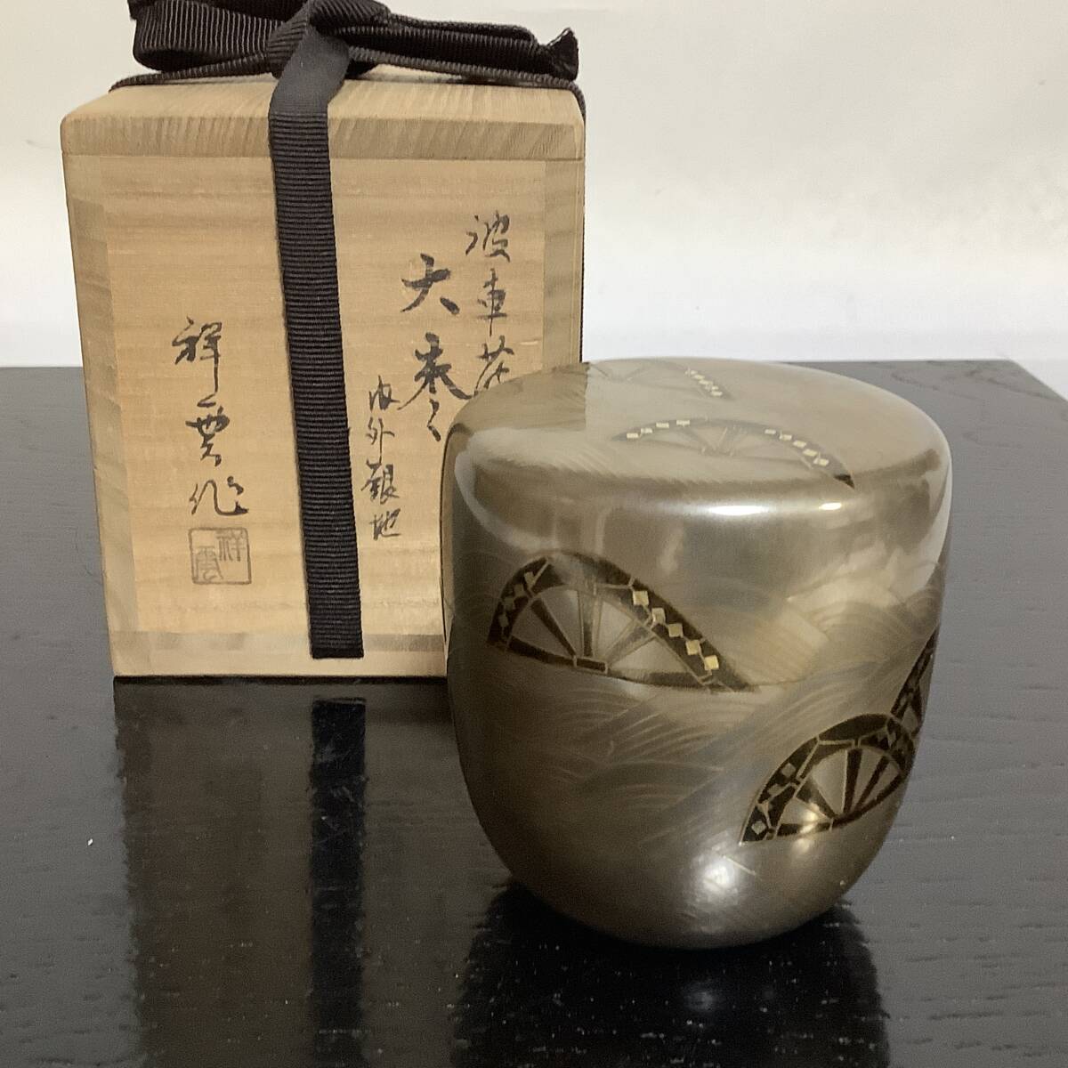 - 浪車蒔絵 大棗 内外銀地 祥雲 茶道具