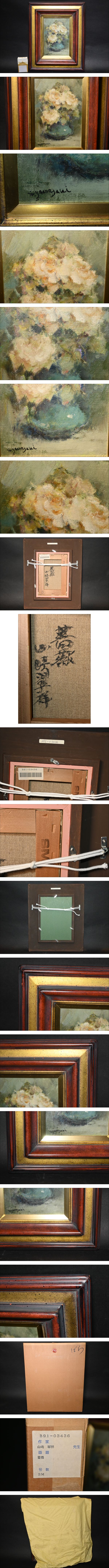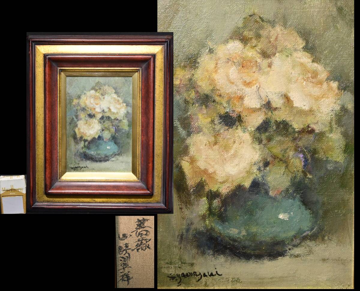 > 真贋保証■山崎翠祥■ 油彩『薔薇』SM 額装 広島県生 赤松麟作に師事 元日本肖像芸術協会理事 バラ ばら さし箱 絵画 油絵 静物画