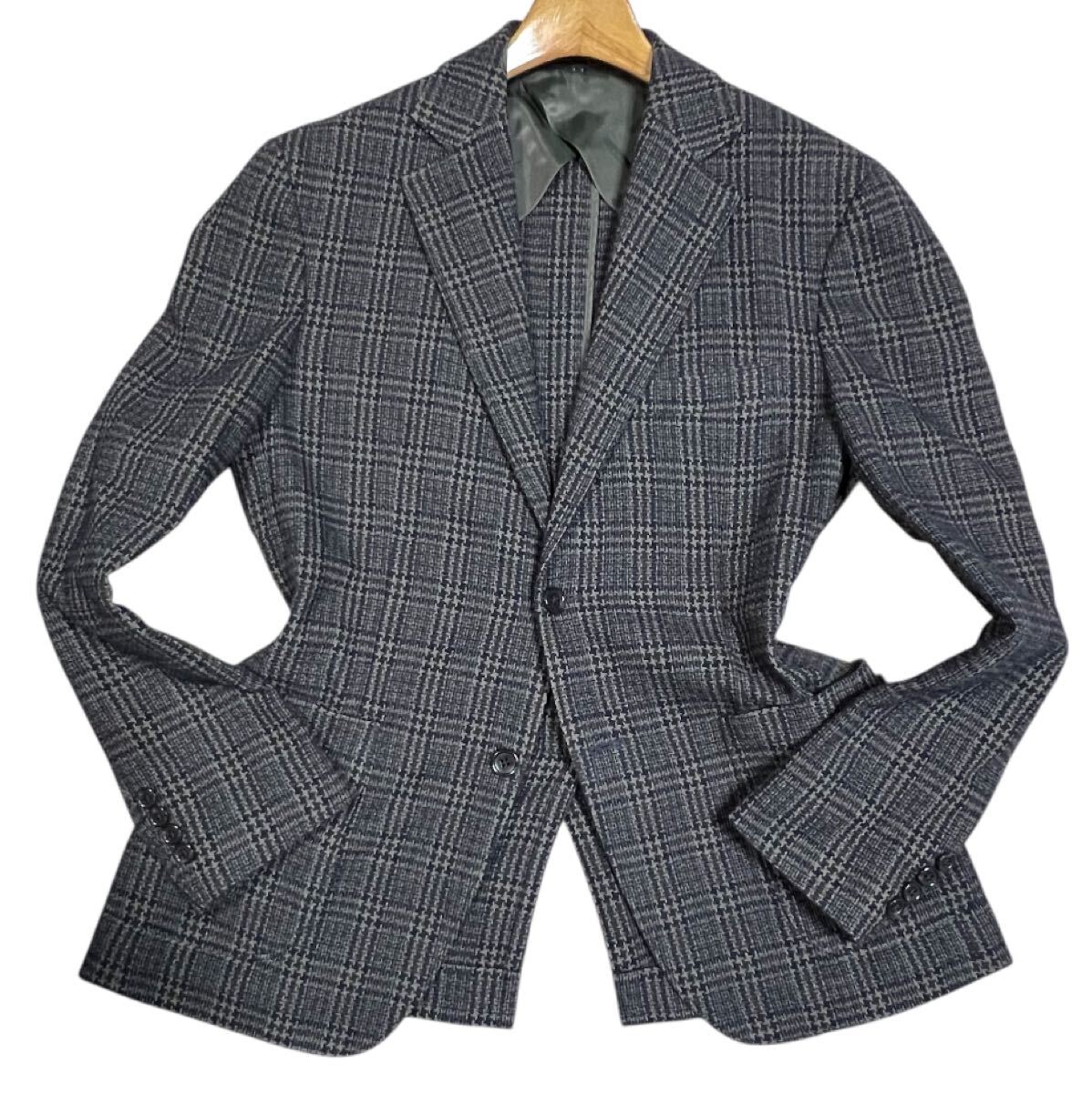 > 極美品1992 by gotairiku/LOAFER/五大陸 ツイード/テーラードジャケット グレンチェック グリーンカーキ色 Lサイズ