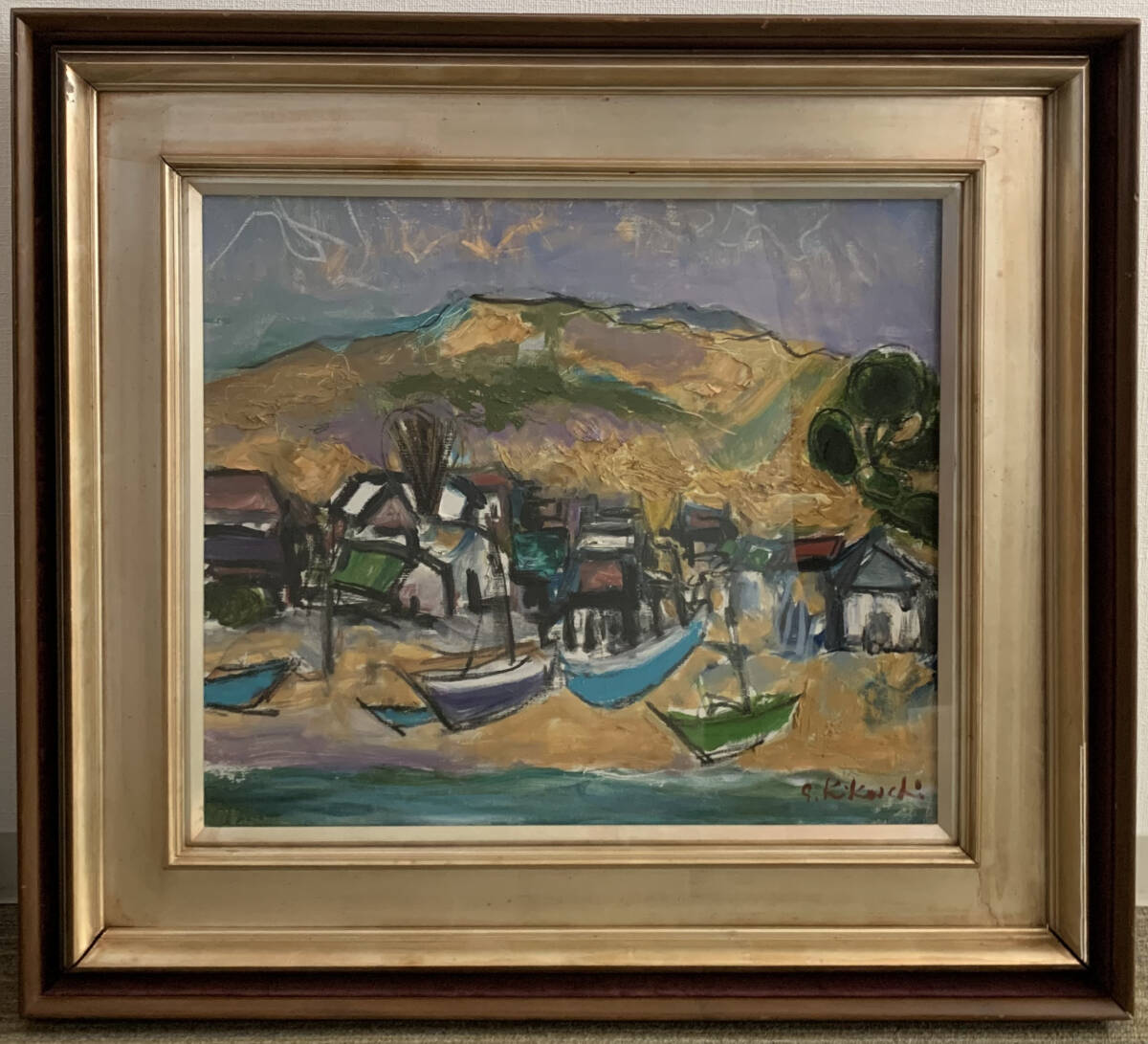 > [真作保証] 菊地 精二 『福浦』 油彩画 10号 独立美術協会会員 北海道重鎮画家 多摩美術大教授 R7-0160