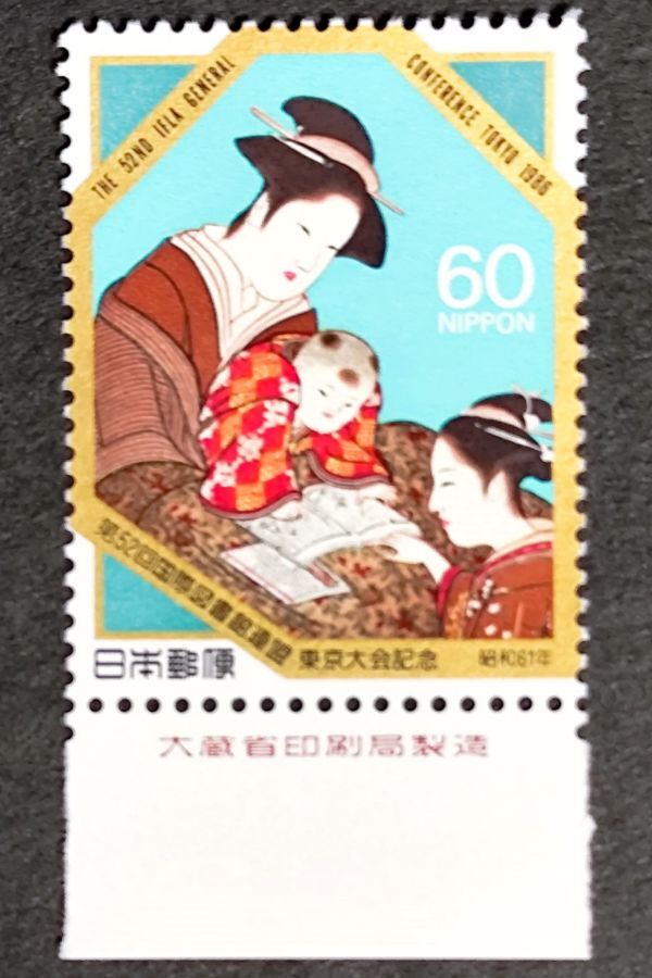 > [25091130]【第53回国際図書館連盟東京大会記念】単片 銘版付 勝川春章筆「風俗十二月図」60円 1986年発行 美品