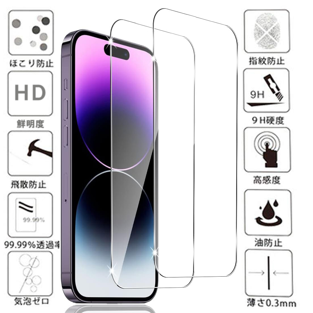 - 2枚入り iPhone 14 Pro ガラス フィルム アイフォン 液晶 画面 保護 シール シート カバー スクリーン Glass Film 9H Apple アップル 衝撃