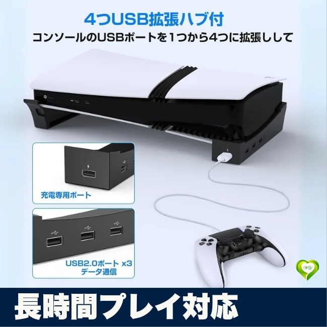 - 【長時間プレイ対応】PS5 横置きスタンド ipega USB拡張 放熱 滑り止め 安定収納 人気 おすすめ