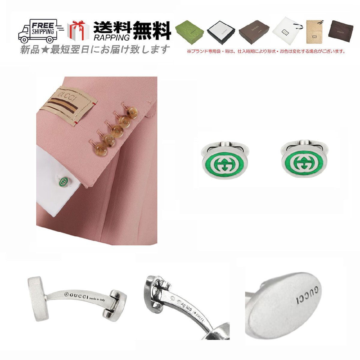 - L534.. GUCCI グッチ カフリンクス カフス ボタン インターロッキング G エナメル シルバー Ag925 GG ロゴ イタリア製 ★ グリーン