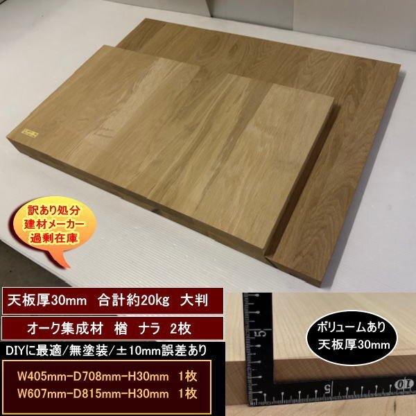 - オーク 楢 ナラ 集成材 端材2点セット 約20kg 無塗装 高級材 405-708-30mm 他1 送料無料 訳あり処分 重量あり DIY