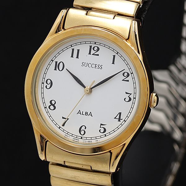 - 稼働 セイコー アルバ サクセス QZ ホワイト文字盤 V721-6A70 メンズ腕時計 KMR 2000000 NSK