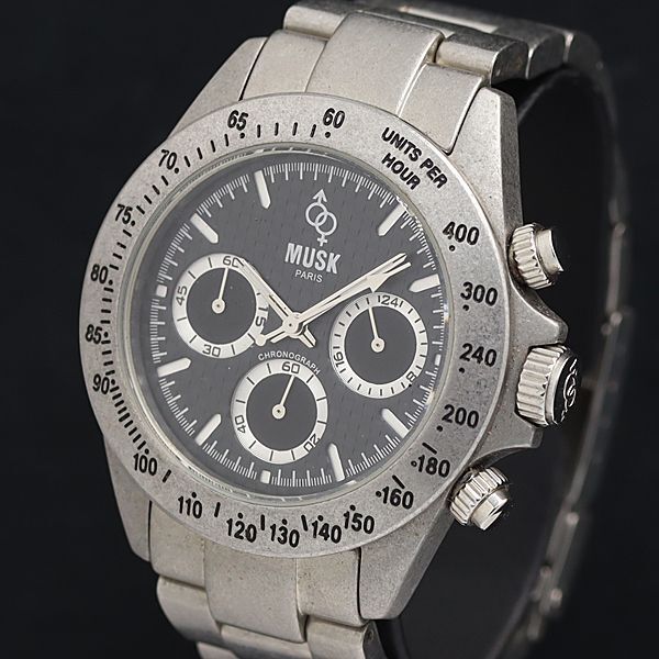 - 稼動 良品 ムスク QZ MGT6498 スモセコ デイト クロノグラフ ブラック文字盤 メンズ腕時計 YUM 2000000 NSK