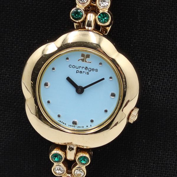 - 稼働 クレージュ V400-0730 石付 QZ ライトブルー文字盤 レディース腕時計 TKD 2000000 NSK