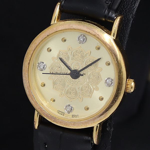 - 稼動 ヴィンテージ QZ 794-1994 平安建都1200年記念 ゴールド文字盤 石付 ラウンド レディース腕時計 2000000 NSK OMI