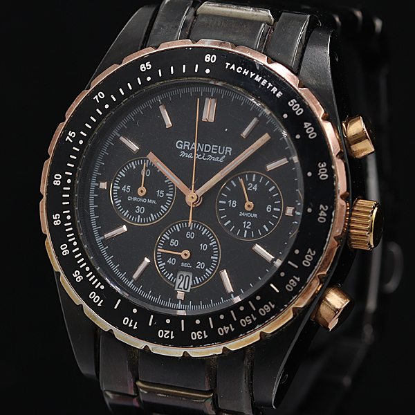 - 稼働 グランジュール QZ クロノグラフ ブラック文字盤 メンズ腕時計 KMR 2000000 NSK