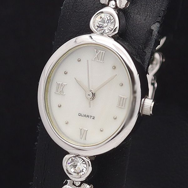 - 稼働 良品 エイボン QZ 石付 オーバル ホワイトシェル文字盤 レディース腕時計 KNK