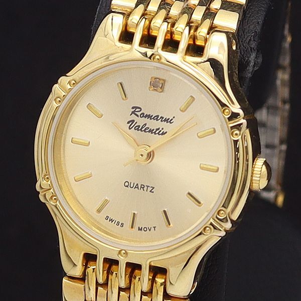 - 良品 ロマーニバレンチノ QZ ゴールド文字盤 石付 ラウンド レディース腕時計 2550000KNK
