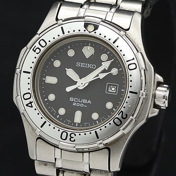 - セイコー QZ 7N85-0010 スキューバ 200M デイト ラウンド 黒文字盤 レディース/ボーイズ腕時計 NBY0826 8717000STU