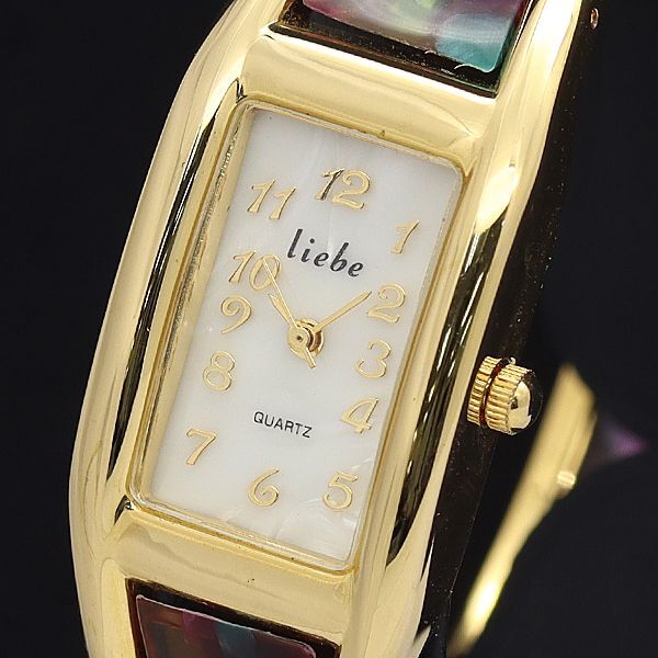 - 稼働 良品 リエべ QZ バングルウォッチ 白文字盤 スクエア レディース腕時計 NKG