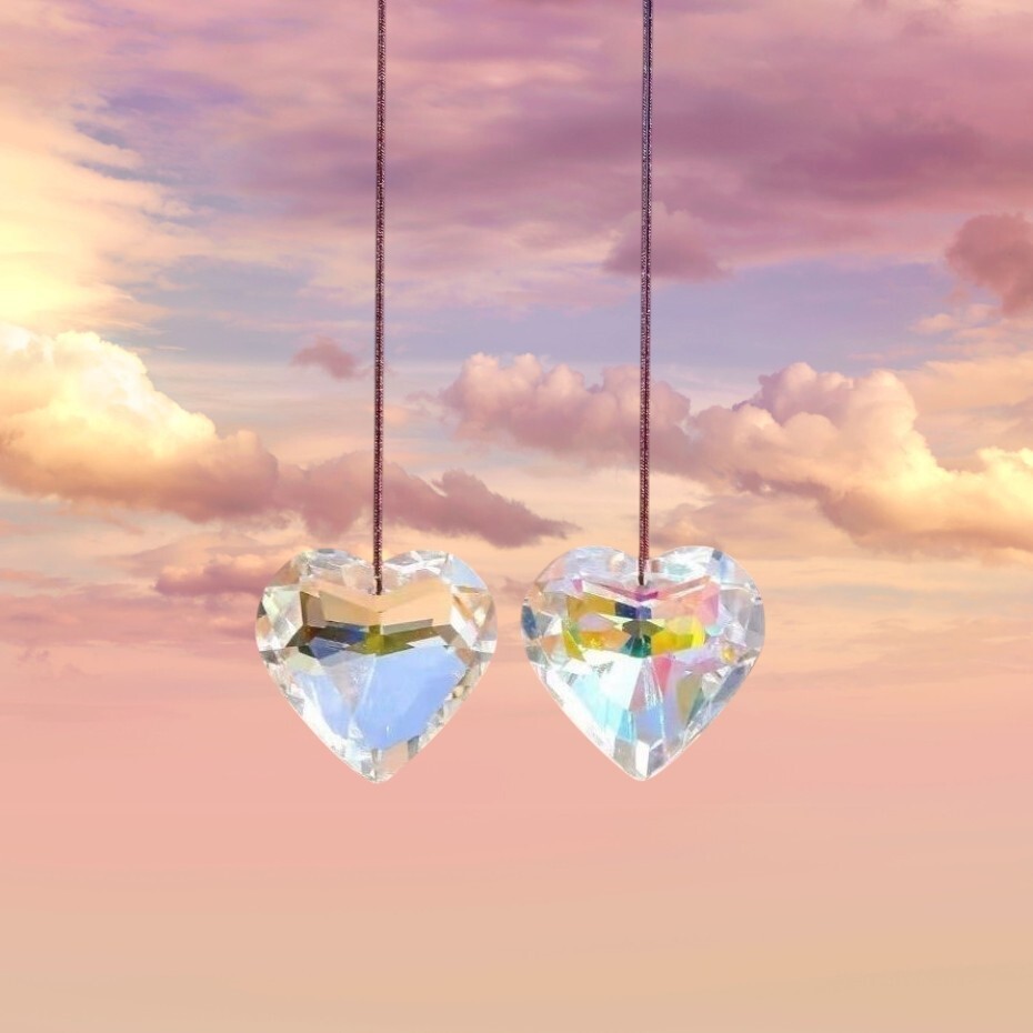 - 【2個セット クリア】ハートのクリスタル サンキャッチャー ハート型 紐付き 窓辺やお部屋の飾りに◎