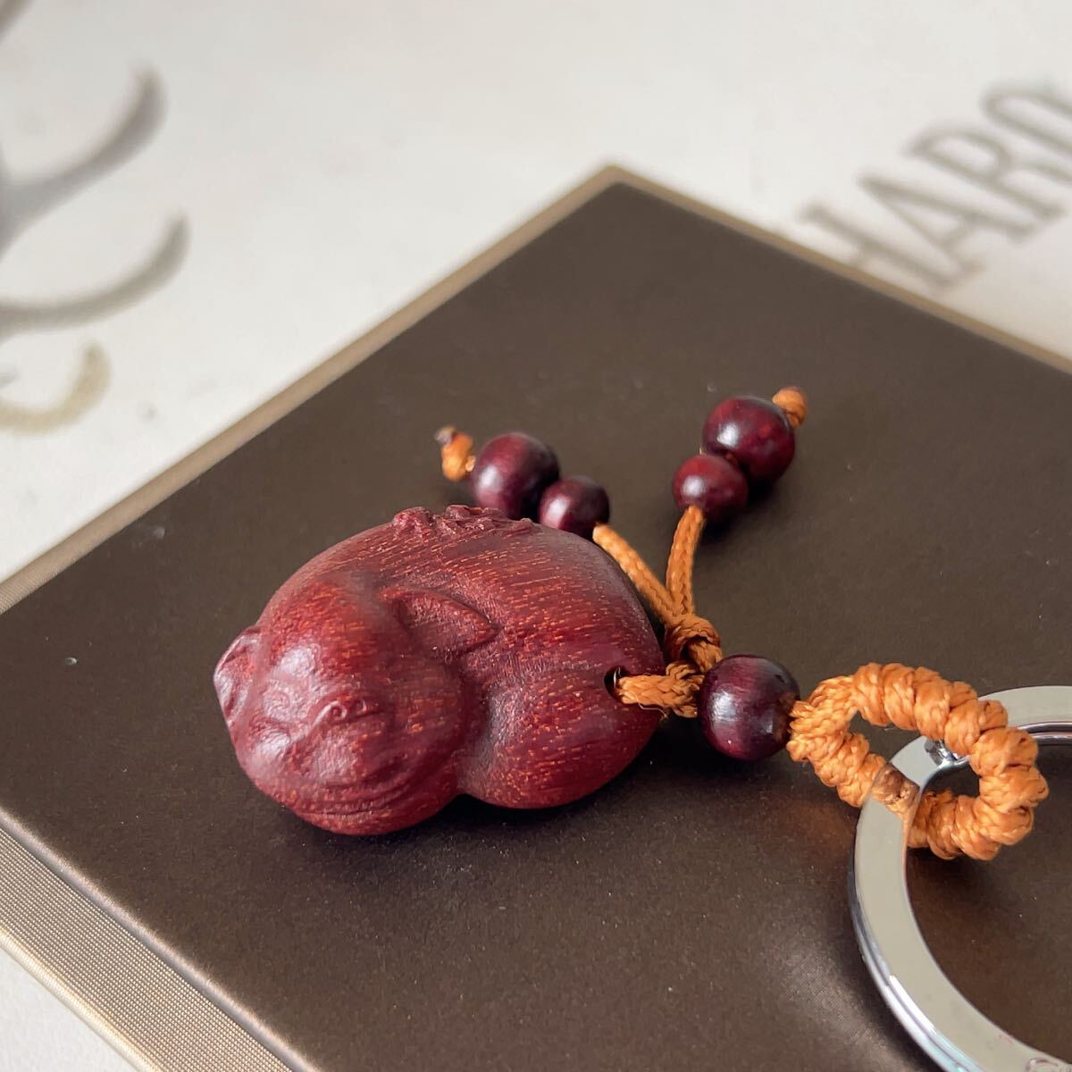 - ◇紫檀木◇豚形◇チャーム◇彫刻◇キーホルダー◇巾着袋付き◇プレゼントにも012A9134