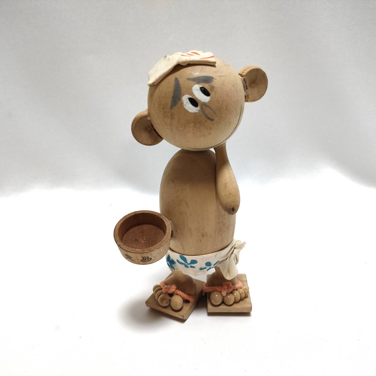 - U647 面白い こけし かわいい 昭和レトロ 木彫り 置物 当時物 銭湯 桶を持った人 民芸 日本 doll 人形