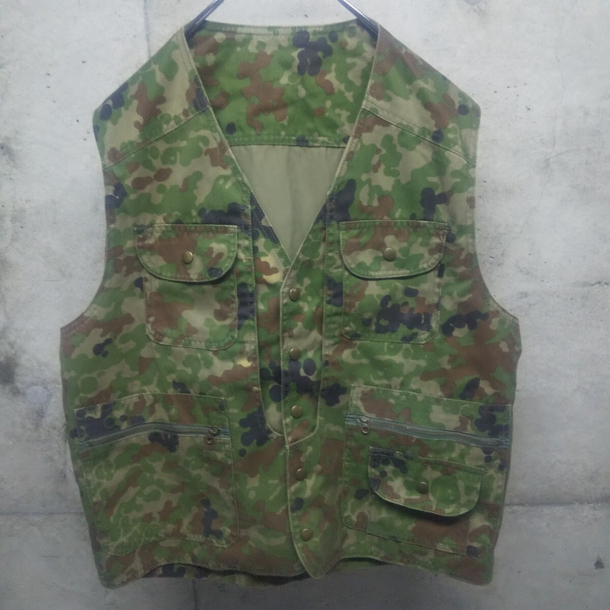 - 90s 古着 カモフラ ベスト LL 迷彩 軍物 ミリタリー