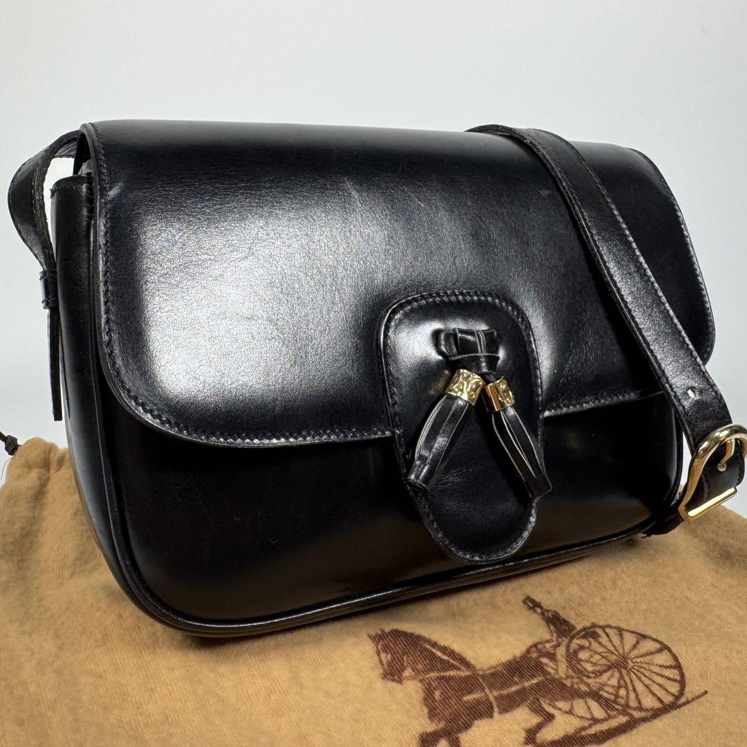 > 希少 美品 CELINE ショルダーバッグ タッセル レザー オールド ブラック 黒 ヴィンテージ セリーヌ ビジネス フォーマル 本革