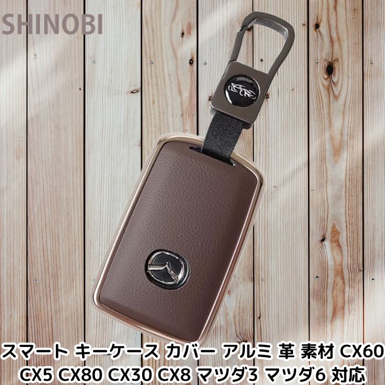 - スマート キーケース カバー アルミ 革 素材 CX60 CX5 CX80 CX30 CX8 マツダ3 マツダ6 対応 ブラウン