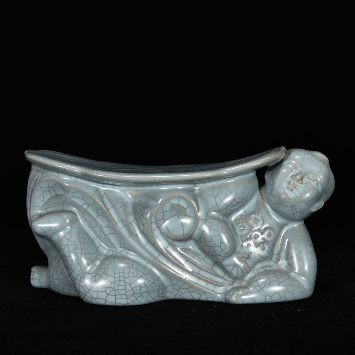 > 9_ZZ8979【惠】人間国宝 中国骨董 陶芸 磁器【宋汝窯の磁器枕です】工芸品 施釉陶 青花磁 陶芸 置物 收藏品