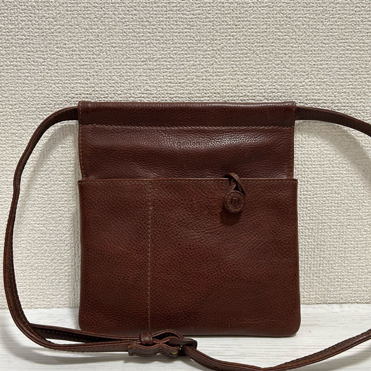 - 美品 genten ゲンテン メンズ レディース クロスボディバッグ ポシェット ミニショルダーバッグ 茶色 ブラウン 本革 牛革 レザー ブランド