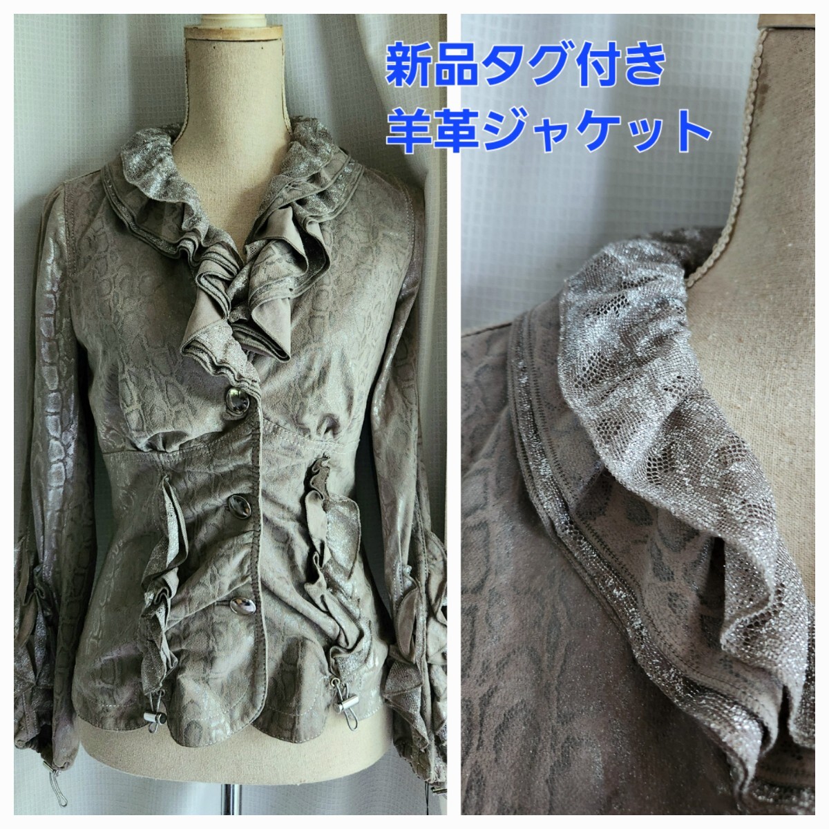 - 新品タグ付き 羊革 チュール付きのゴージャスなジャケット スネーク型押し フリル