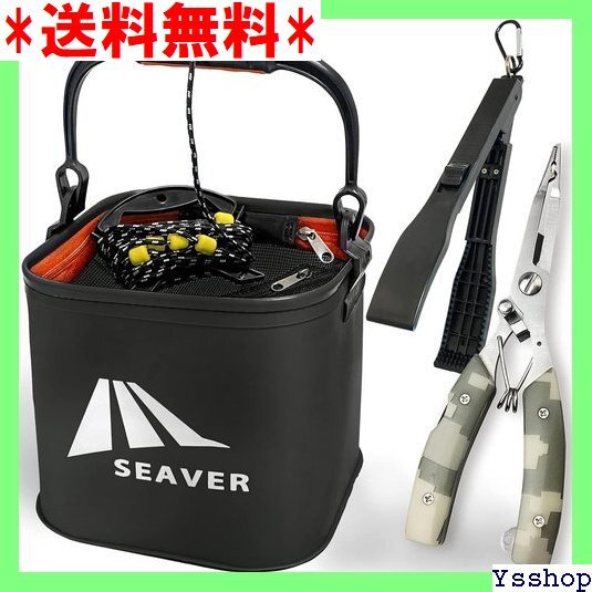 - ◆大人気 SEAVER シーバー 釣り 水汲み バケツ バッカン ー プライヤー フィッシュグリップ ブラック 3点セット 23
