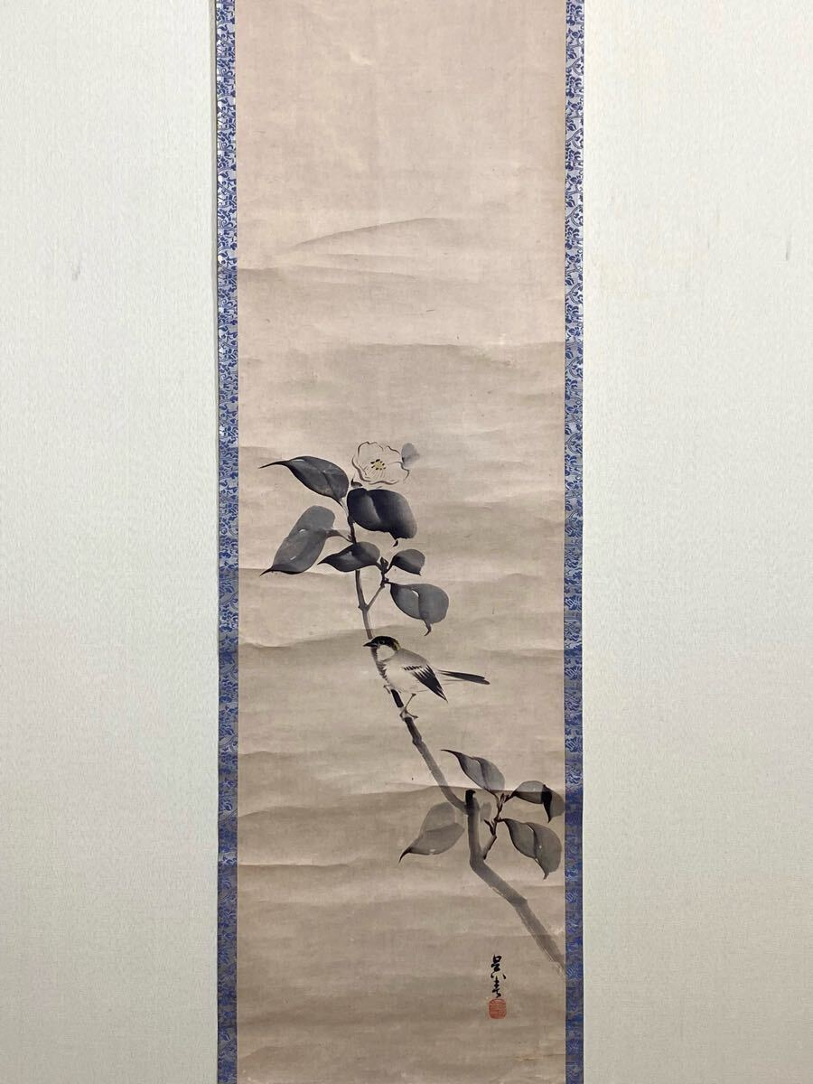 - 《魚亀》【模写】松村呉春「白椿小禽図」紙本 四条派始祖 大西酔月門下 日本画 茶掛 茶道具 古美術 掛軸 掛け軸 中国 人が書いたもの