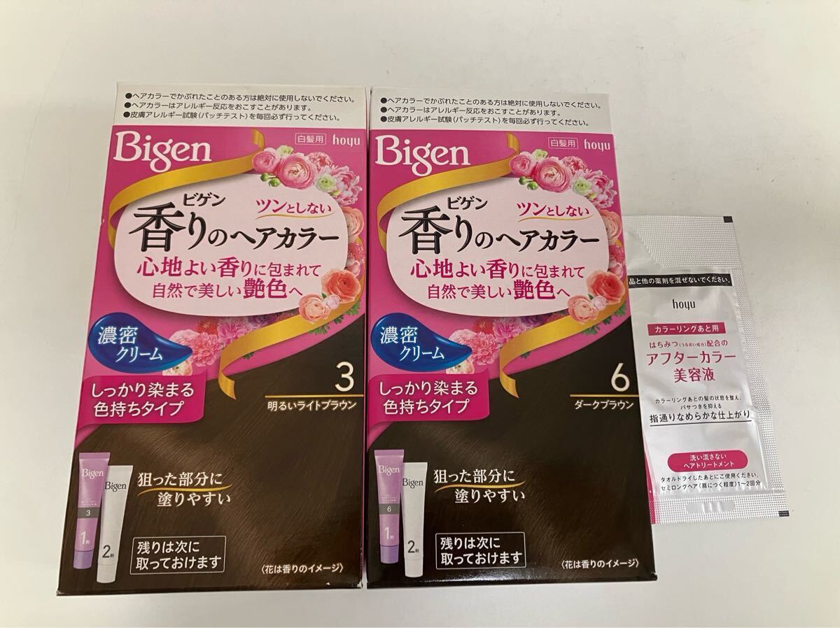 - 2つセット おまけ付き 新品未開封 ビゲン 香りのヘアカラー 6ダークブラウン 3明るいライトブラウン アフターカラー美容液
