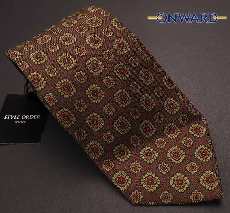 - 新品定価1.4万円 オンワード樫山 Selflex 日本製 シルク100% 花柄 ネクタイ 茶 LW0018