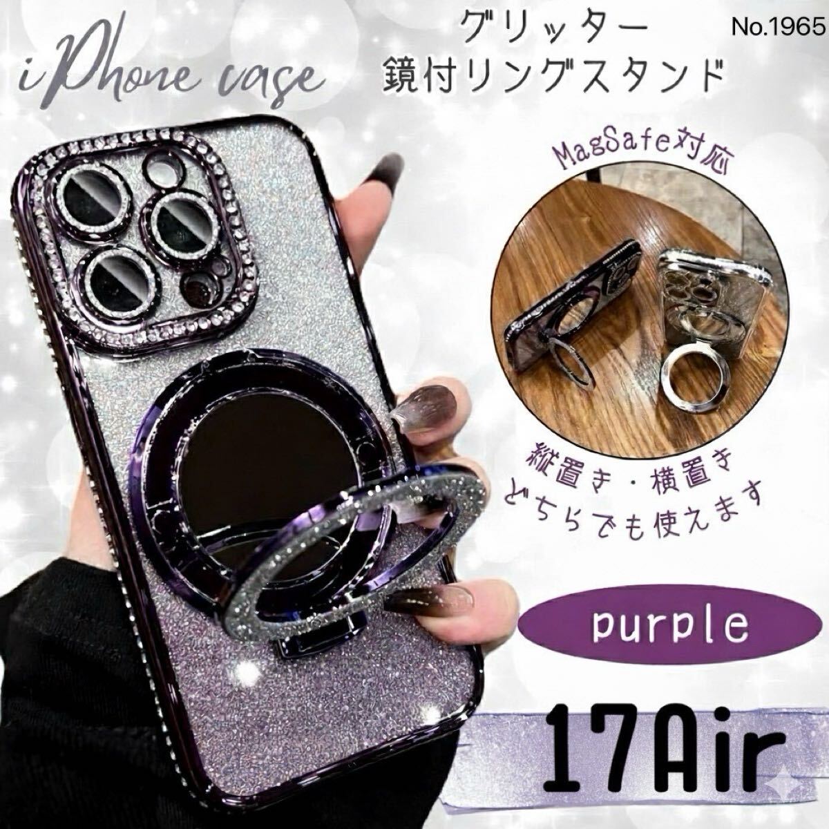 - 新品!グリッター 鏡付 リングスタンド iPhone17Airケース パープル ラメ