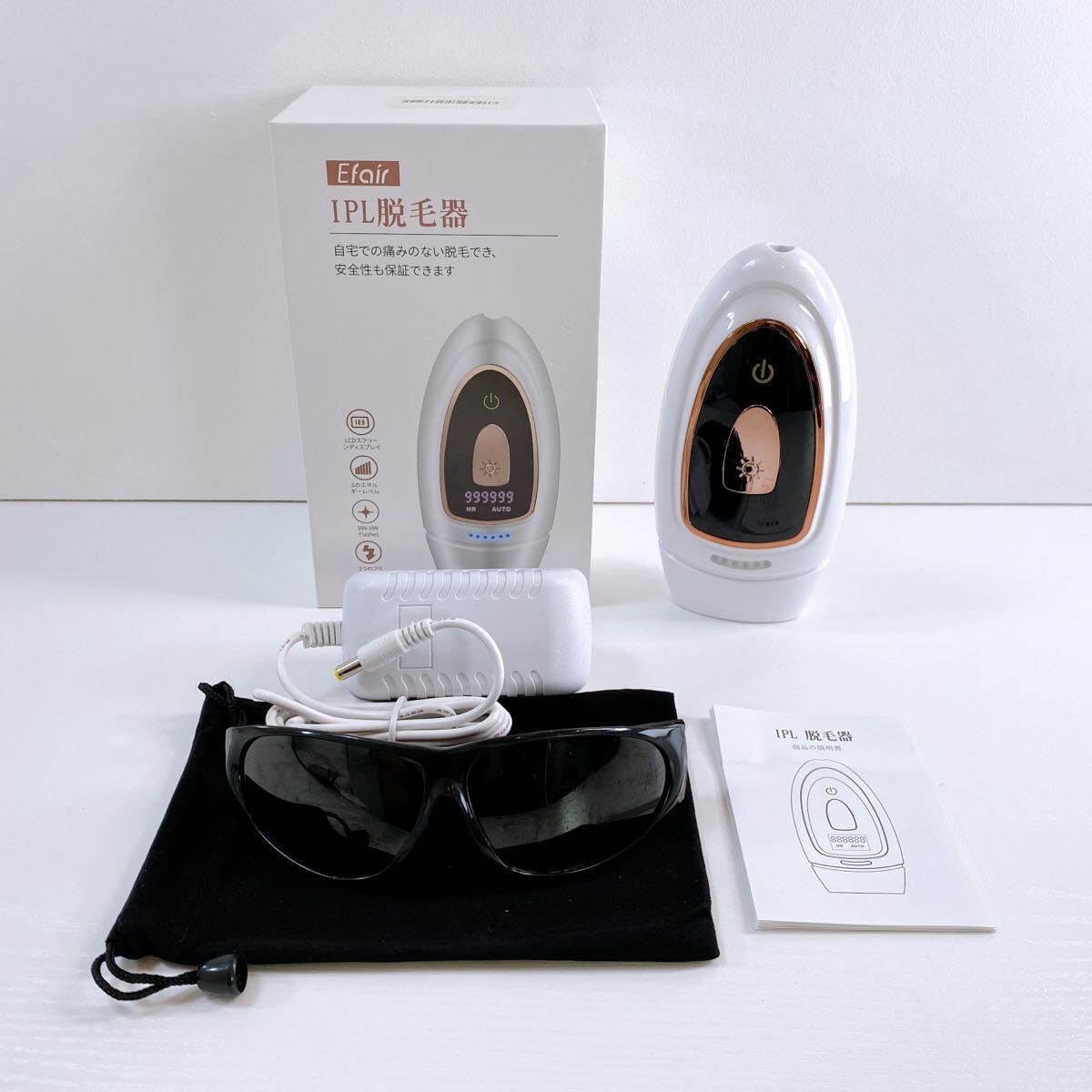 > 328【中古】EfairI PL脱毛器 999,999フラッシュ 光脱毛器 美容機器 全身脱毛 ボディケア サングラス 箱付き 通電確認済み 現状品