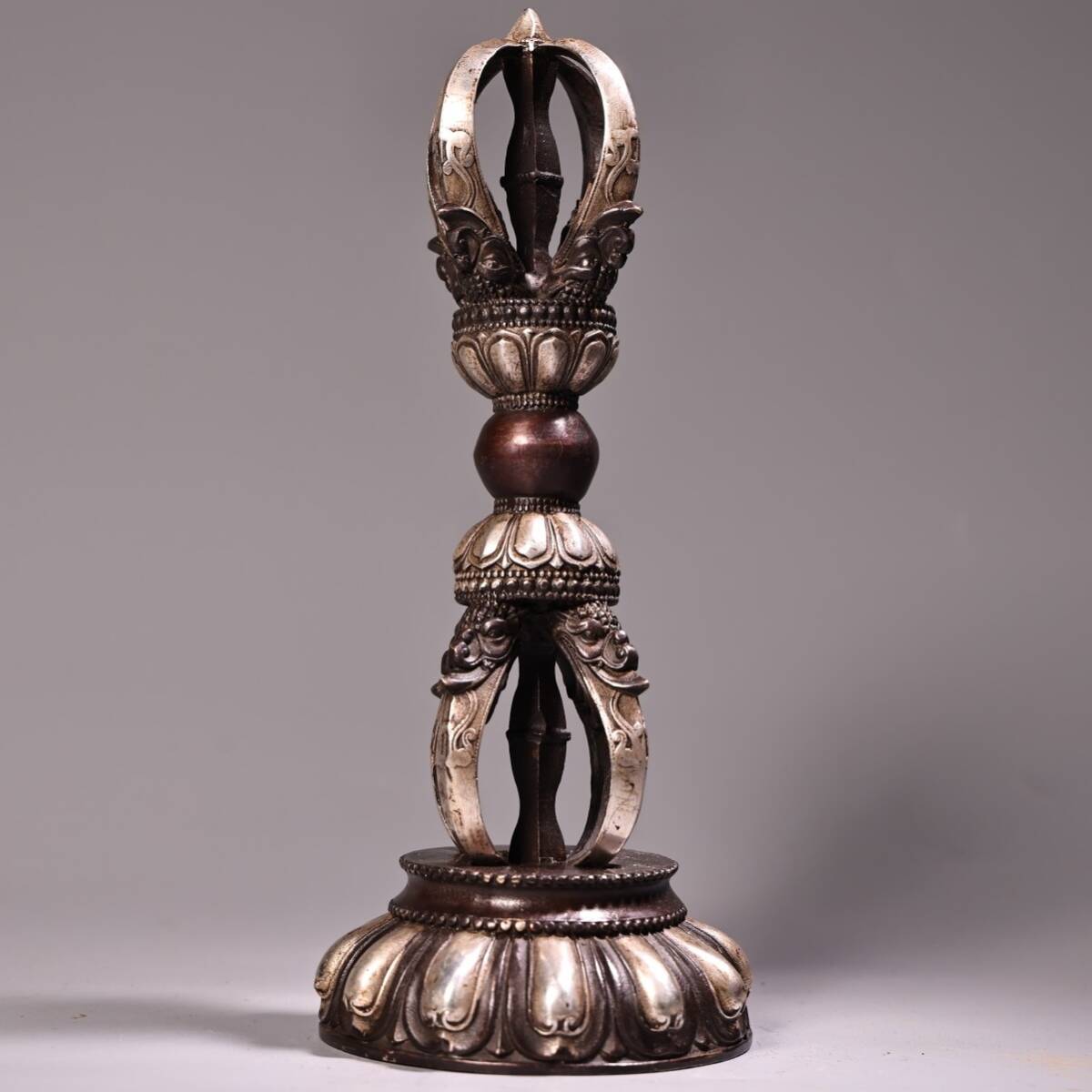 - 清代 旧蔵 チベット古寺 銀 五股多傑 金剛降魔杵 法器 銅製 銅琉金 唐物 收蔵品 時代物 古美術 古置物 希少珍品 供養品 文房具9.14