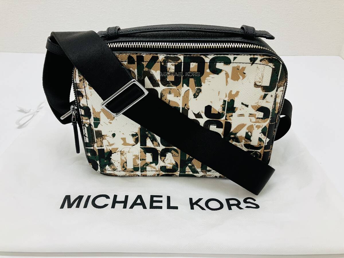 > 【USED品・保管品】*ユニセックス(男女兼用)*MICHAEL KORS マイケルコース ロゴマップ KORSロゴ 総柄 37F2LCOL6V ショルダーバッグ