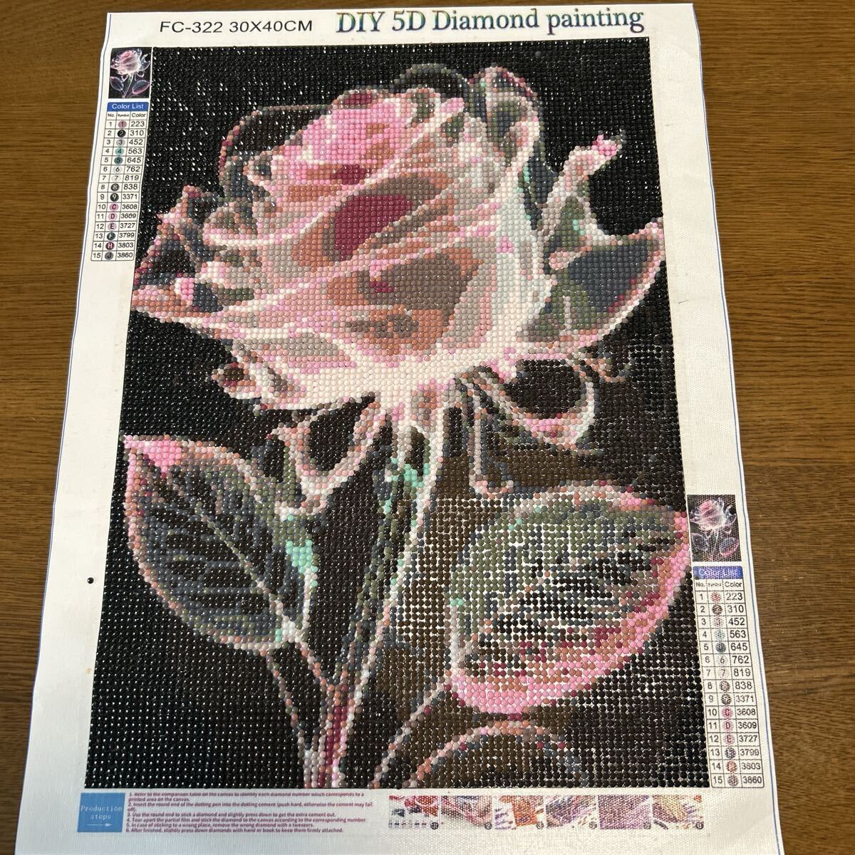 - ダイヤモンドアート完成品/ハンドメイド/インテリア/バラ/花/フラワー