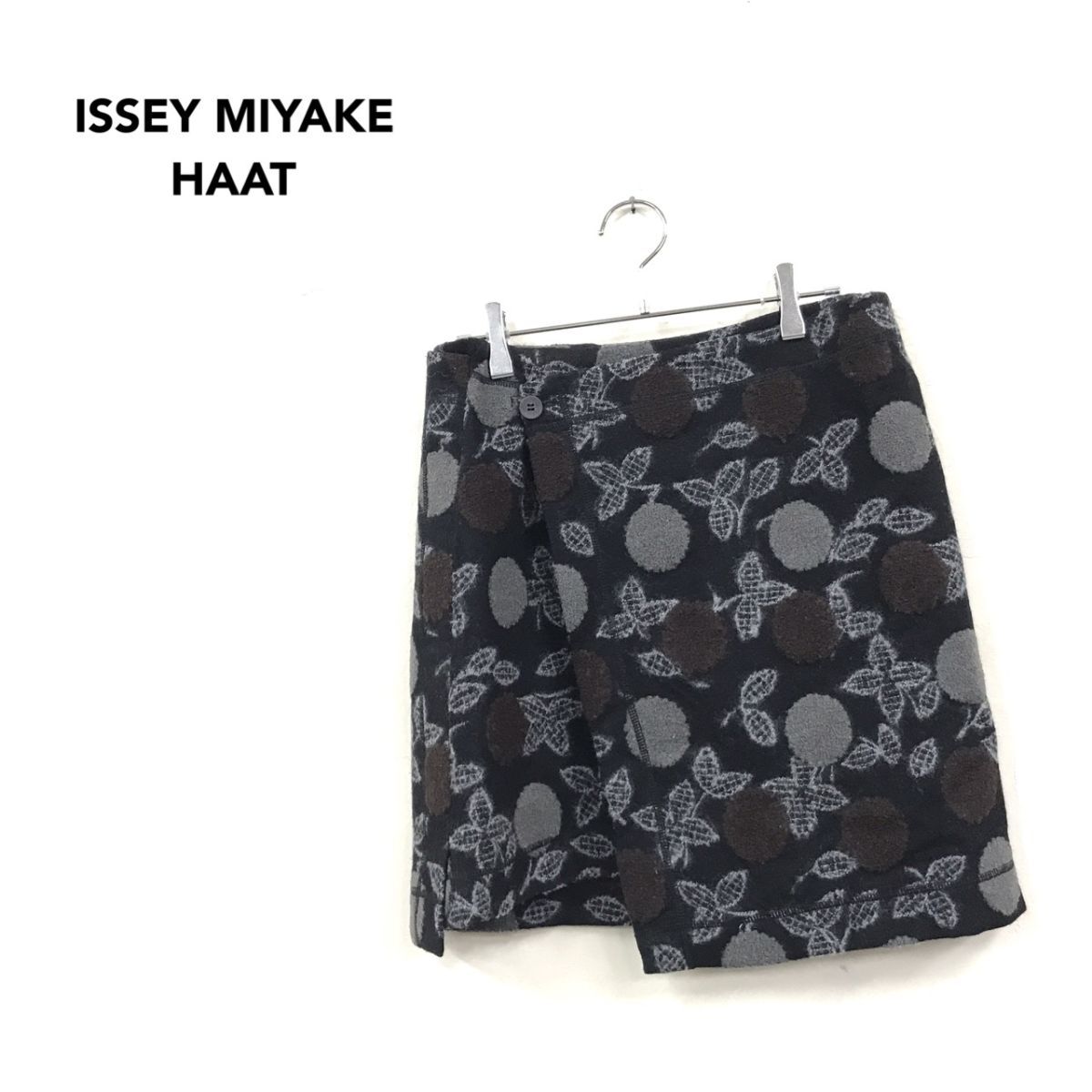 > 2K1822-D◆良品◆ ISSEY MIYAKE HAAT イッセイミヤケ ハート デザインウールスカート ラップスカート ◆size2 マルチ 総柄 毛100