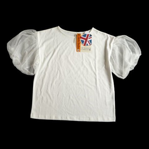 > 新品 袖バルーン チュール Tシャツ L シアー袖 トップス HK WORKS LONDON 白 ヒロココシノ カットソー パフスリーブ