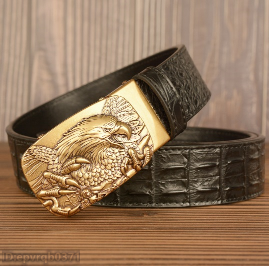 > レザーベルト 新品 メンズベルト 本革 オートロック式 イーグル 金属バックル ワニ柄 幅3.5センチ 紳士 長さ調整可能 /黒
