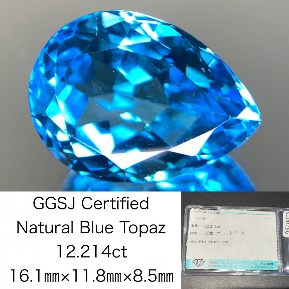 > ブルートパーズ 天然 12.214ct 宝石ソーティング付き 16.1×11.8×8.5 ルース( 裸石 ) 6791Y